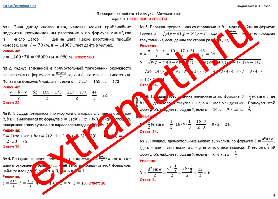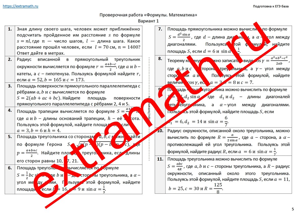 29.🆗 ЕГЭ база Проверочная работа "Формулы. Математика"