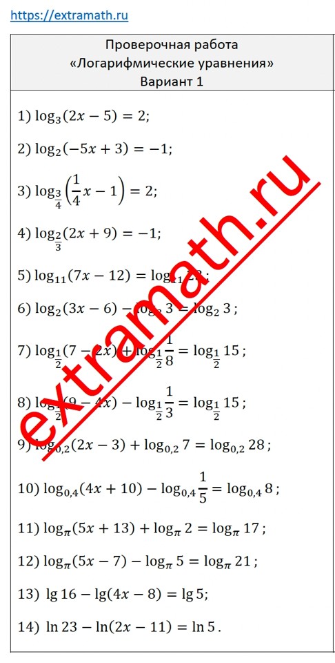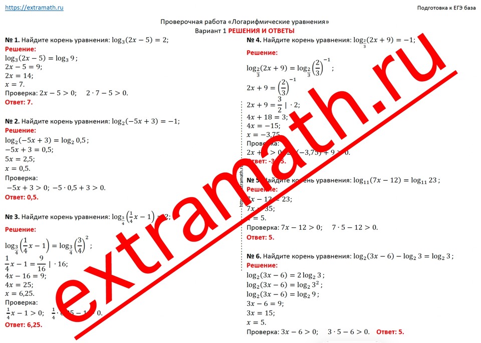 26.🆗 ЕГЭ база Проверочная работа "Логарифмические уравнения"