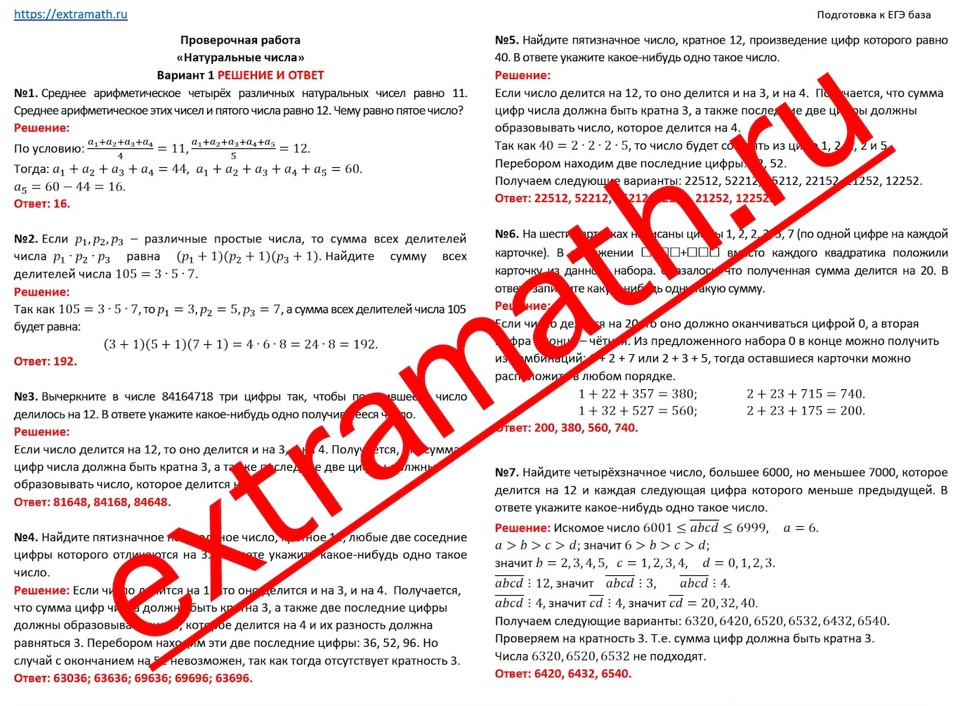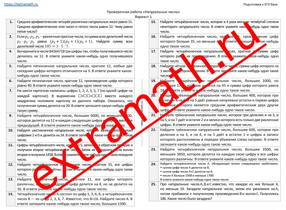 22.🆗 ЕГЭ база Проверочная работа "Натуральные числа"