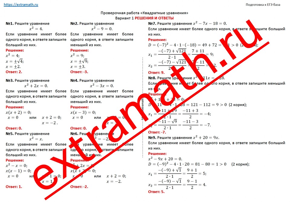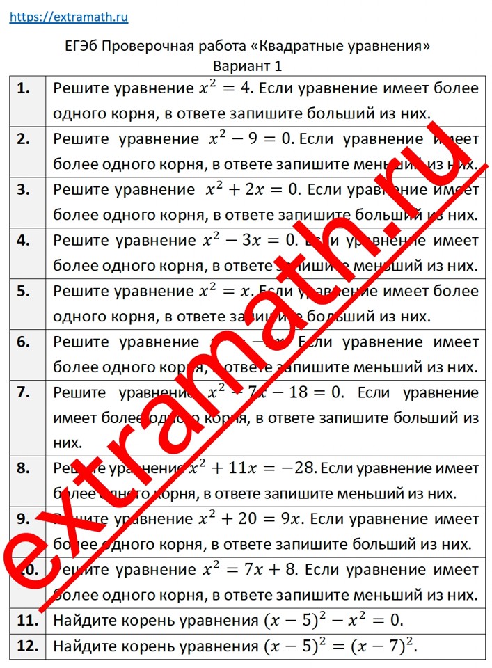 16.🆗 ЕГЭ база Проверочная работа "Квадратные уравнения"
