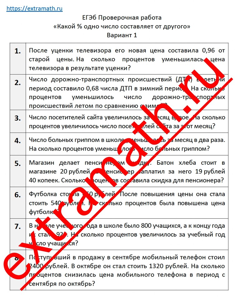 11.🆗ЕГЭ база Проверочная работа "Какой % составляет одно число от другого"