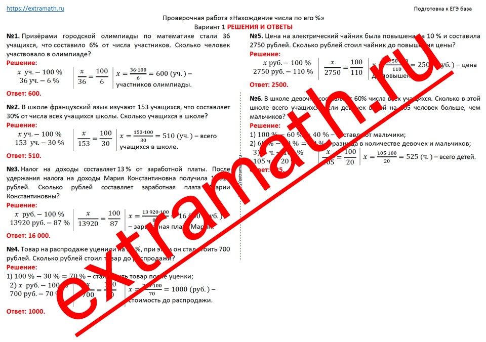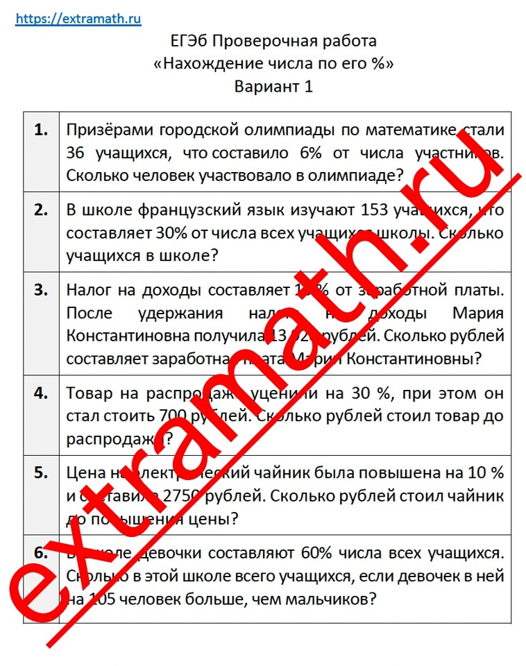 10.🆗ЕГЭ база Проверочная работа "Нахождение числа по его %"
