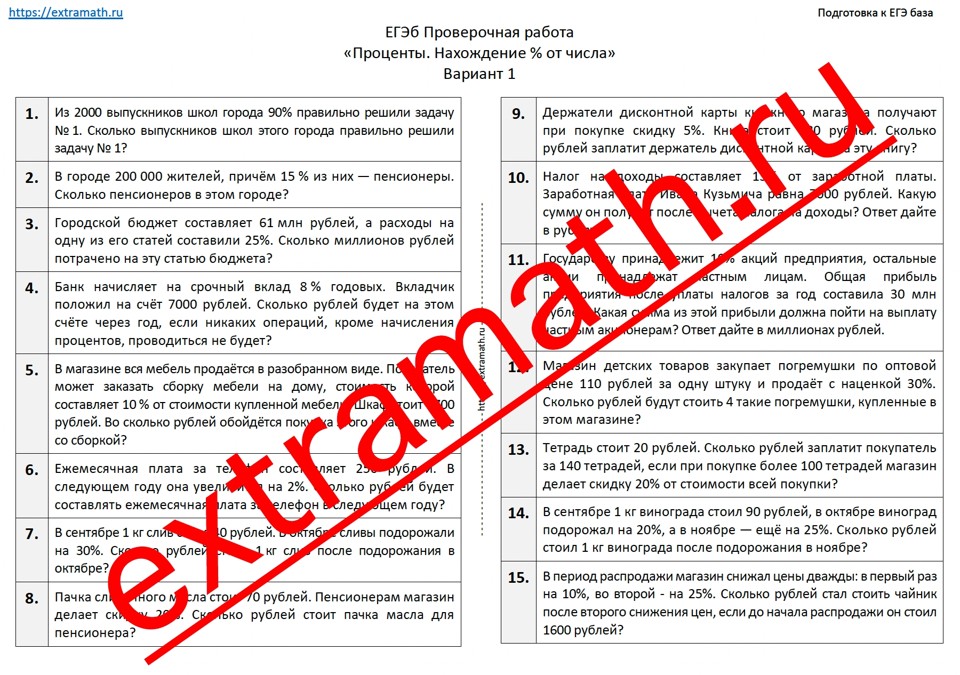 9.🆗ЕГЭ база Проверочная работа "Нахождение % от числа"