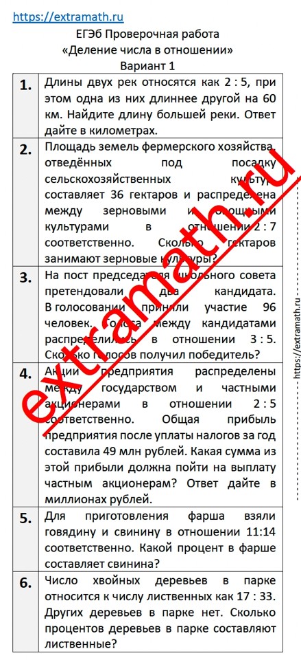 8.🆗ЕГЭ база Проверочная работа "Деление числа в данном отношении"