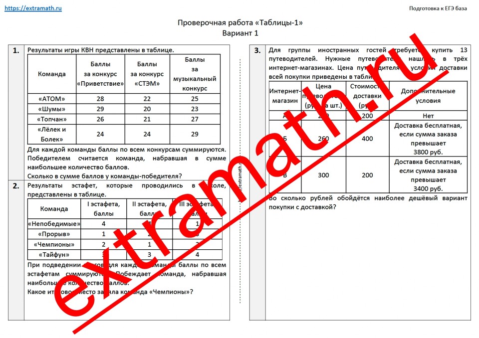 12.🆗ЕГЭ база Две проверочные работы "Таблицы"