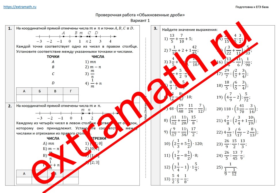 1.🆗ЕГЭ база Опорные конспекты + Проверочная работа "Обыкновенные дроби"