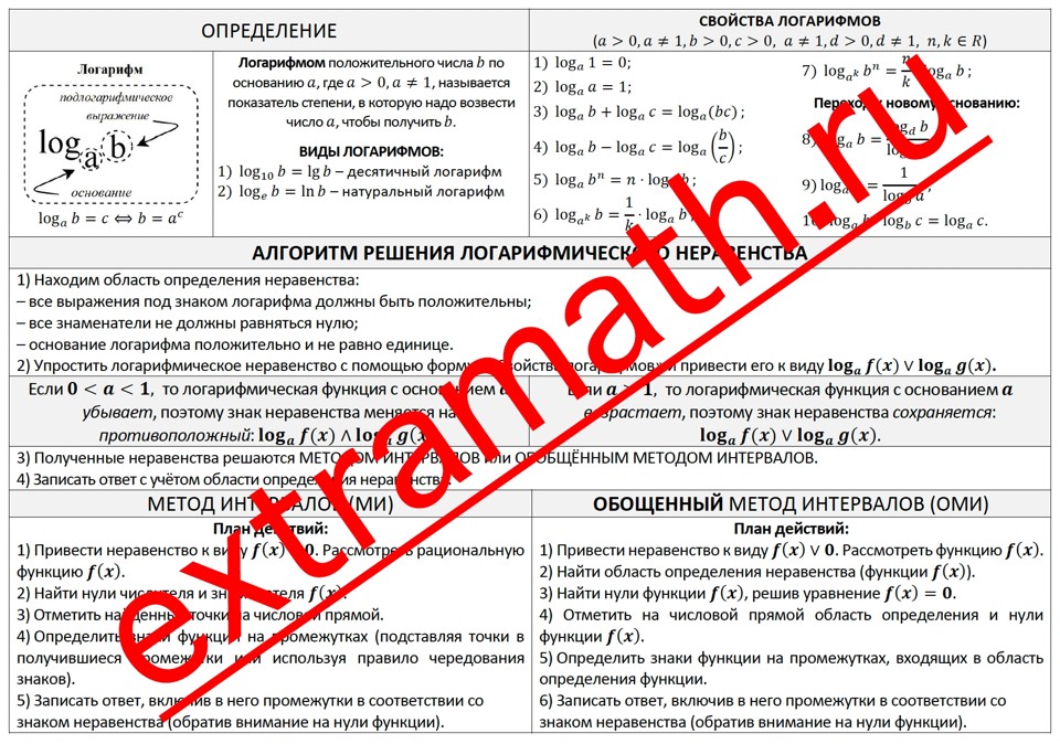 🆗ЕГЭ профиль (2 часть) Опорный конспект + Проверочная работа "Логарифмические неравенства"