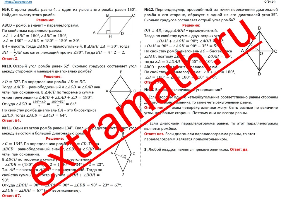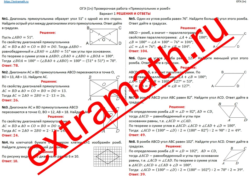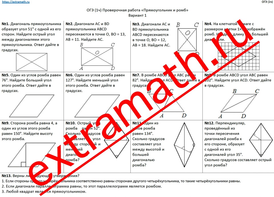 🆗 ОГЭ (1 часть) Опорные конспекты + Проверочная работа "Прямоугольник и ромб"