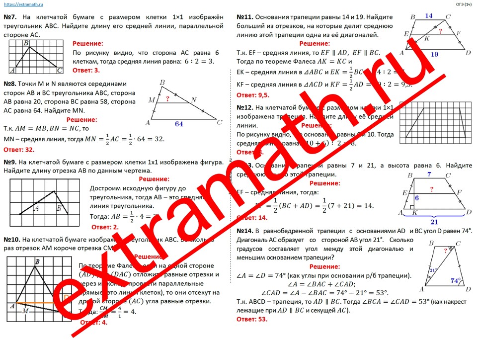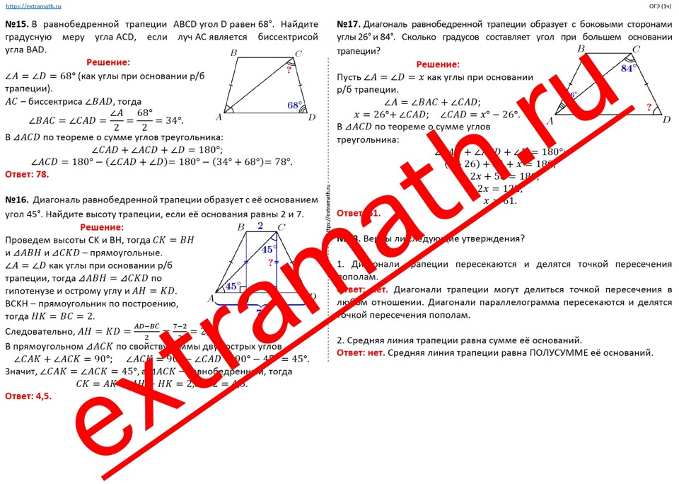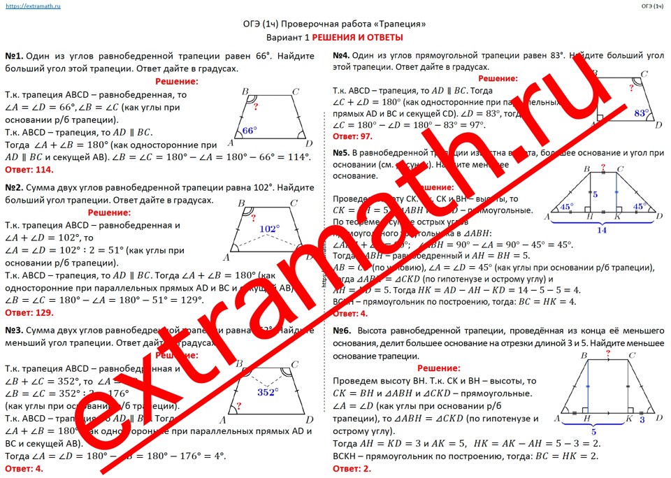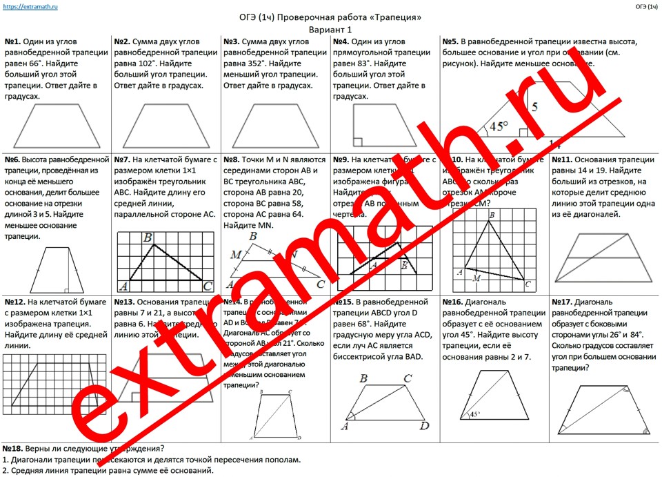 🆗 ОГЭ (1 часть) Опорные конспекты + Проверочная работа "Трапеция"