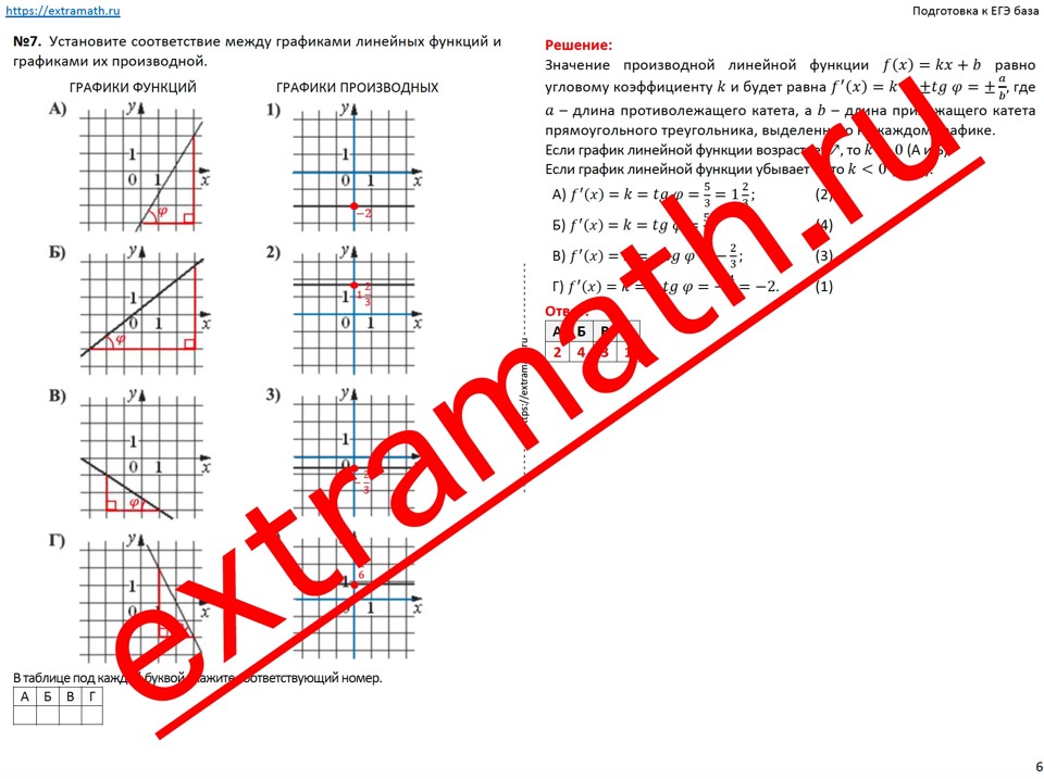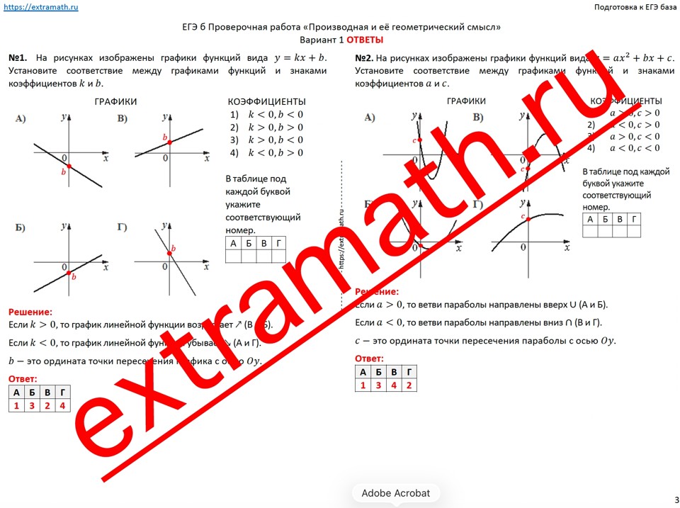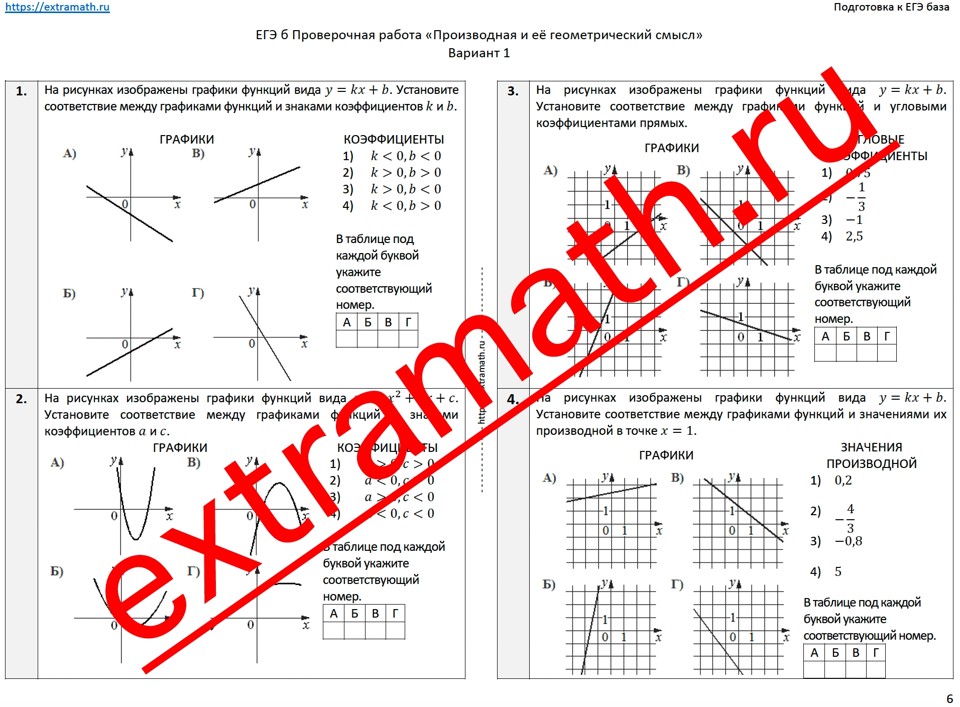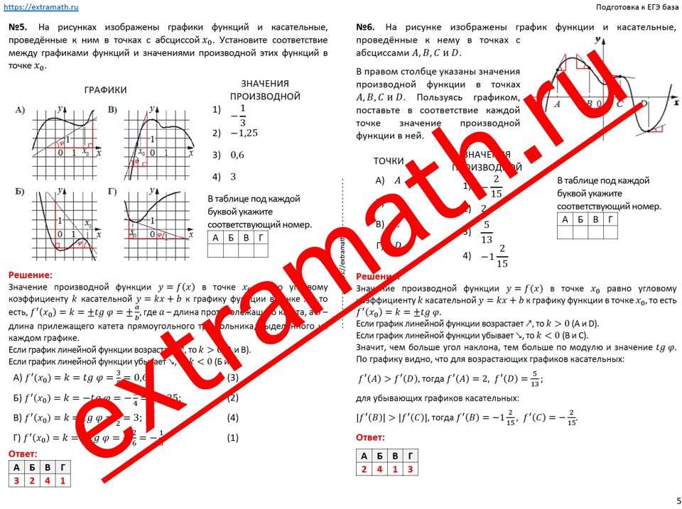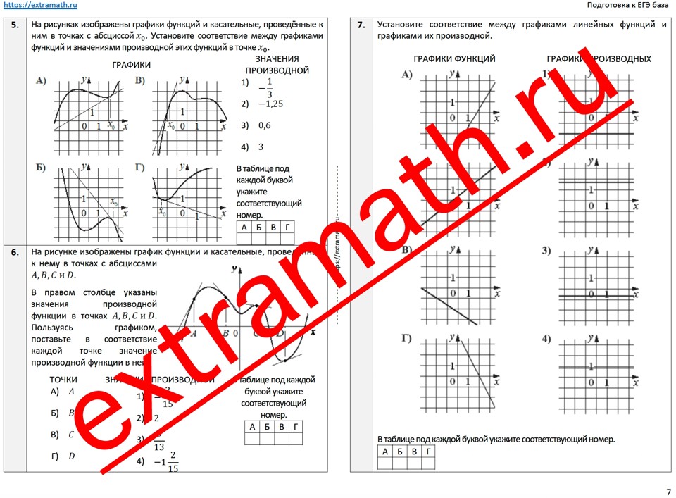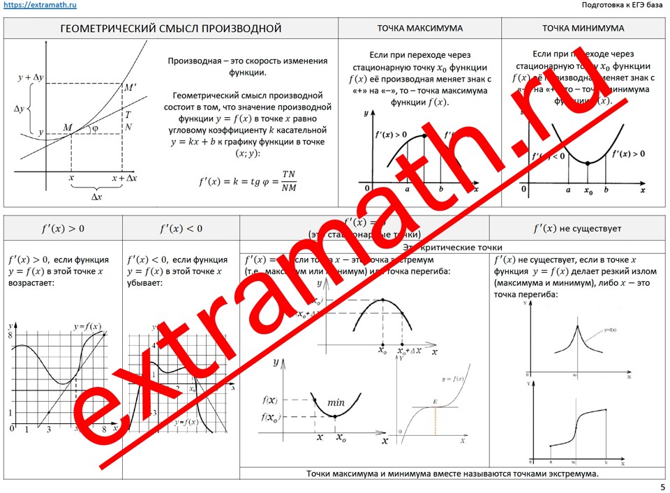 🆗 ЕГЭ база Опорный конспект + Проверочная работа "Производная и её геометрический смысл"